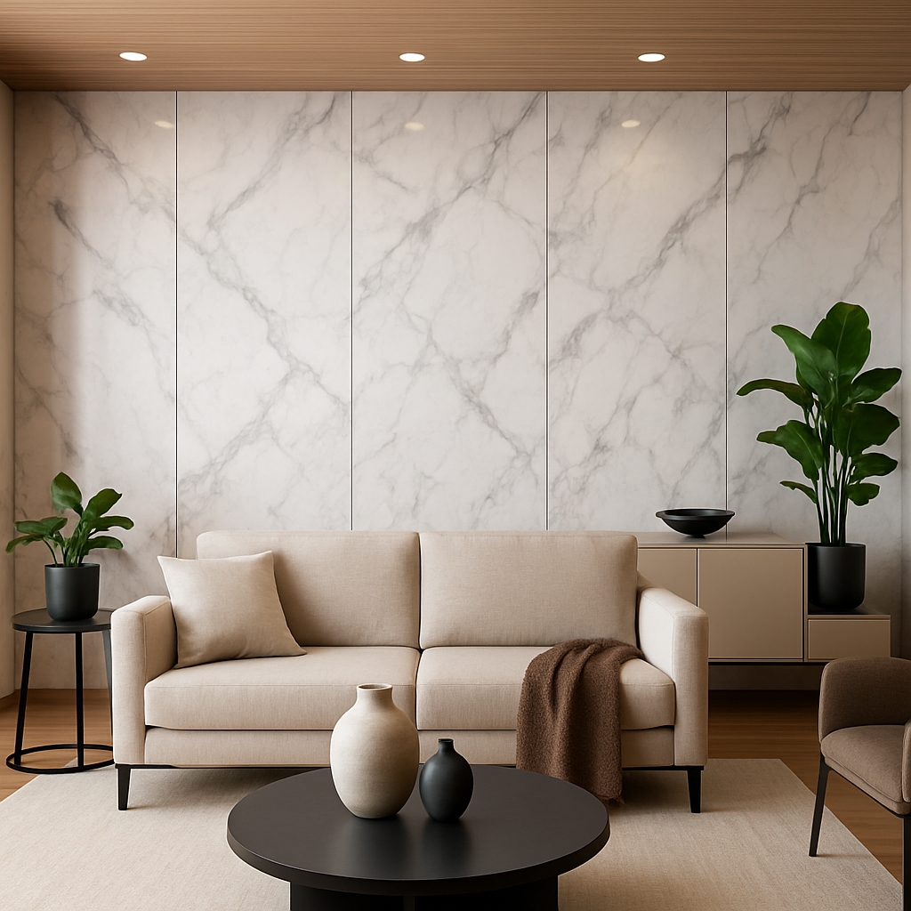 As placas marmorizadas em PVC representam uma revolução quando o assunto é acabamento sofisticado, funcional e acessível. Elas são perfeitas para quem busca o visual luxuoso do mármore, mas com um material muito mais leve, resistente e prático de instalar e manter. Cada vez mais presentes em projetos de interiores, essas placas aliam tecnologia e estética para transformar ambientes com elegância e eficiência.